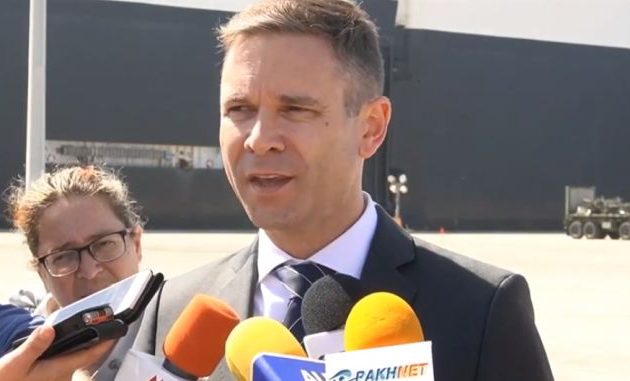 Επίσης ευχαρίστησε τις αμερικανικές ομάδες που βοηθάνε στη μεταφορά του στρατιωτικού υλικού, τη διοίκηση μεταφορών του αμερικανικού στρατού και τη διοίκηση εφοδιασμού και μεταφορών και εξήρε την «καταπληκτική δουλειά που έχουν κάνει εδώ και τον συντονισμό τους με τις ελληνικές ένοπλες δυνάμεις», υπογραμμίζοντας για μία ακόμη φορά «τις ισχυρές διμερείς σχέσεις που έχουμε χτίσει» και τα όσα θετικά προκύπτουν από τη σχέση αυτή.