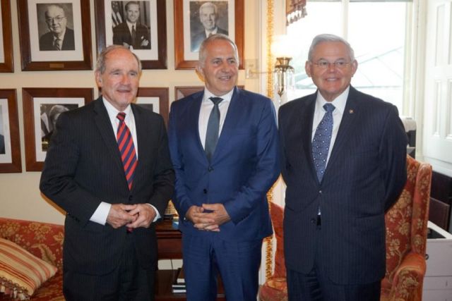 Ακολούθως, ο ΥΕΘΑ είχε συναντήσεις με τα μέλη της Ομοσπονδιακής Γερουσίας, James Risch (Πρόεδρο της Επιτροπής Εξωτερικών Υποθέσεων της Γερουσίας), Robert Menendez (υψηλόβαθμο μέλος των Δημοκρατικών στην Επιτροπή Εξωτερικών Υποθέσεων της Γερουσίας), Jack Reed (υψηλόβαθμο μέλος των Δημοκρατικών στην Επιτροπή Αμυντικών Υποθέσεων Γερουσίας) και Chris Van Hollen.
