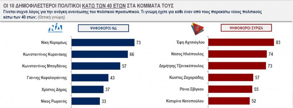 Την δημοφιλία υποψηφίων κάτω των 40 ετών της Νέας Δημοκρατίας και του ΣΥΡΙΖΑ, μέτρησε σε έρευνά της η Kapa Research.