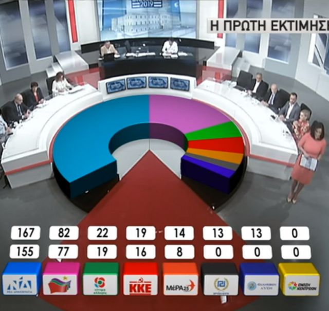 Έτσι, η Νέα Δημοκρατία πετυχαίνει αυτοδυναμία από 155 έως 167 έδρες.