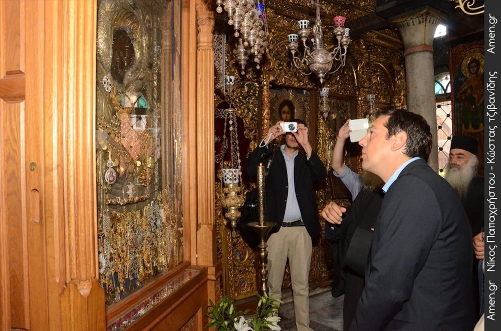 Συγκεκριμένα και όπως έχει γραφτεί παντού, ο Αλέξης Τσίπρας εντυπωσιάστηκε από την εικόνα “Άξιον Εστί” και ζήτησε μάλιστα να μείνει λίγο μόνος του. Να μιλήσει με την Παναγιά, να μιλήσει με τον Θεό, να μιλήσει με τον εαυτό του, ουδείς γνωρίζει…
