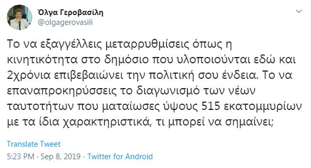 Η γραμματέας της Κ.Ο. του ΣΥΡΙΖΑ έγραψε στον λογαριασμό της στο Twitter:
