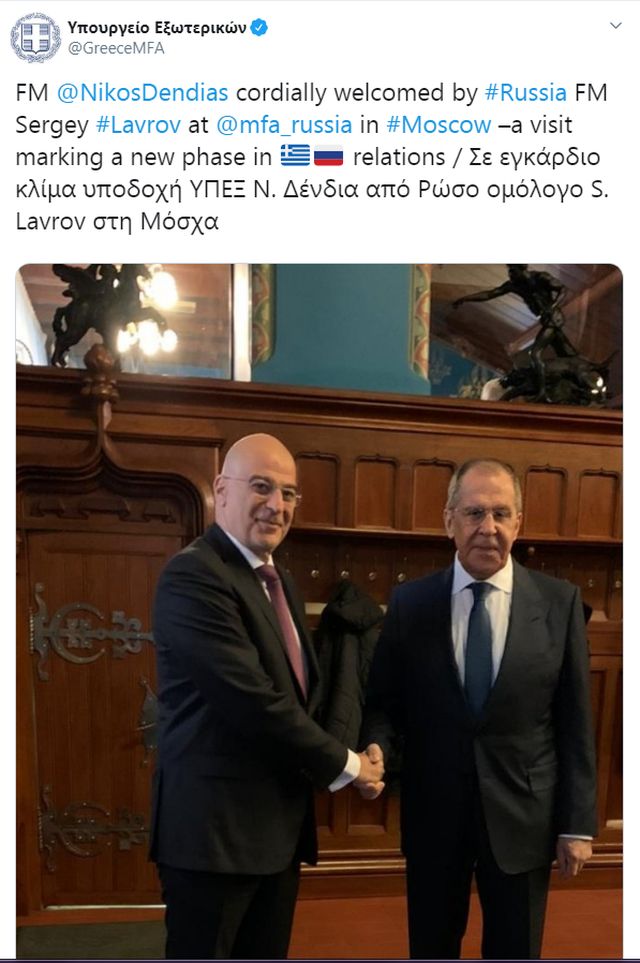 Σε εγκάρδιο κλίμα η συνάντηση Δένδια-Λαβρόφ στη Μόσχα