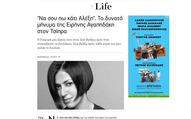 Ωστόσο όταν καλείται να πάρει θέση για τα κοινά και την πολιτική, μετατρέπεται σε αντι-ΣΥΡΙΖΑ «χουλιγκάνο».