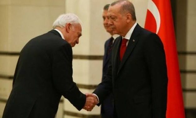 Ο εκλεκτός της κυβέρνησης Μητσοτάκη, παραδίδοντας τα διαπιστευτήριά του στον «σουλτάνο», υποκλίθηκε. Μάλιστα, υποκλίθηκε στον Τούρκο.