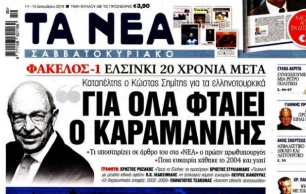 Υπενθυμίζεται πως ο κ. Σημίτης, μέσω του συγκεκριμένου άρθρου, εξαπέλυσε δριμεία επίθεση κατά του Κώστα Καραμανλή, επικρίνοντας τη στάση που είχε κρατήσει ο τότε πρωθυπουργός στη Σύνοδο Κορυφής των Βρυξελλών το 2004 για την ένταξη της Τουρκίας στην Ευρωπαϊκή Ένωση και αποδίδοντάς του ευθύνες για τη σημερινή προκλητική συμπεριφορά της Άγκυρας.