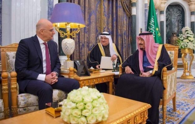 Ο Νίκος Δένδιας συναντήθηκε στη Σαουδική Αραβία – πρώτος σταθμός της επίσκεψής του στη Μέση Ανατολή – με τον βασιλιά της χώρας Σαλμάν.