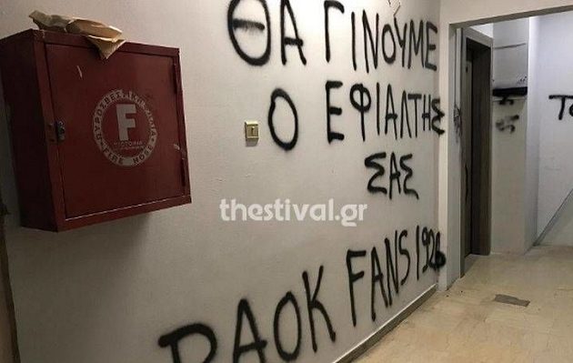Νωρίτερα, οπαδοί του ΠΑΟΚ έγραψαν συνθήματα και πέταξαν τρικάκια στο γραφείο του Σταύρου Καλαφάτη, ενώ ομάδα ατόμων συγκεντρώθηκε έξω από το γραφείο της Έλενας Ράπτη, φώναξε συνθήματα και αποχώρησε.