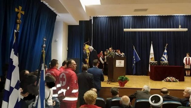 Σύμφωνα με τα όσα μετέδωσε η ΕΡΤ, ένα κορίτσι λιποθύμησε με αποτέλεσμα η ομιλία του κ. Παυλόπουλου να διακοπεί.