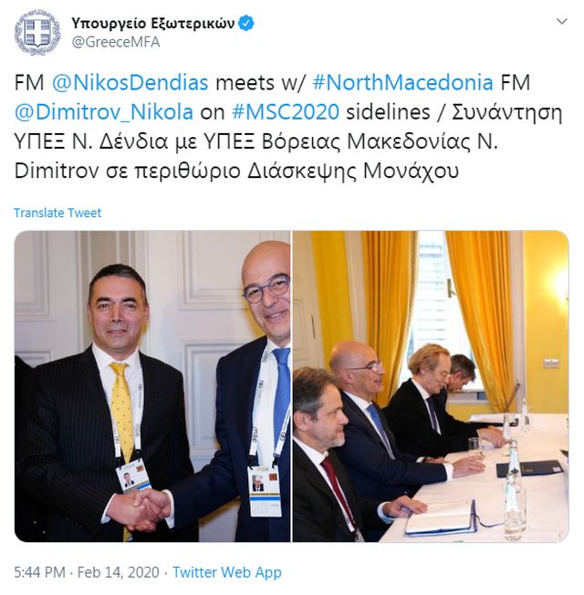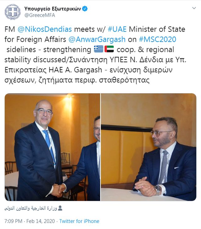 Ο κ. Δένδιας ανήρτησε στον προσωπικό του λογαριασμό στο Twitter φωτογραφίες από τη συνάντηση.