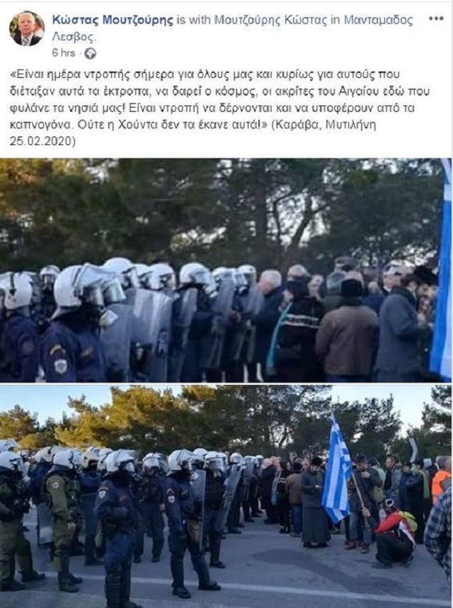 »Είναι ντροπή να δέρνονται και να υποφέρουν από τα καπνογόνα. Ούτε η Χούντα δεν τα έκανε αυτά! (Καράβα, Μυτιλήνη 25.02.2020)».