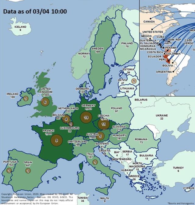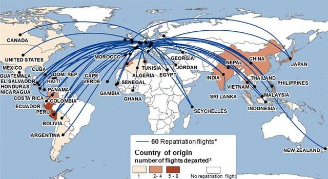 »Ο παρακάτω χάρτης δείχνει ότι από την αρχή της κρίσης, πάνω από 12.000 Ευρωπαίοι έχουν ήδη επαναπατριστεί, με τη συνδρομή του Ευρωπαϊκού Μηχανισμού Πολιτικής Προστασίας ο οποίος συντονίζει και χρηματοδοτεί το 75% των εξόδων.