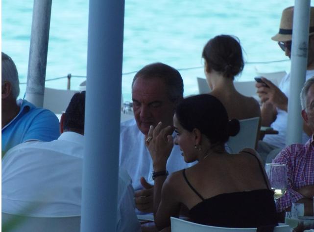 Το Kosvoice τον απαθανάτισε μαυρισμένο και ανανεωμένο να γευματίζει μαζί με φίλους του σε γνωστό εστιατόριο του νησιού.