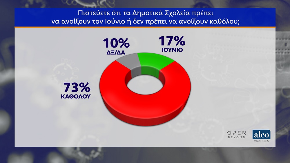 Για το άνοιγμα των δημοτικών σχολείων, το 73% είπε ότι δεν πρέπει να ανοίξουν καθόλου.