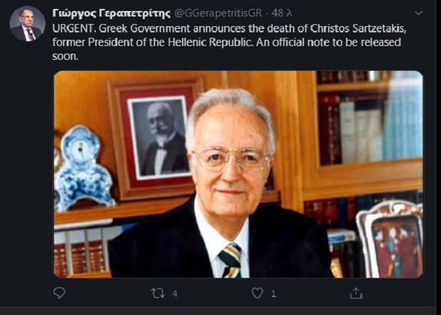 Μέσω ενός ψεύτικου λογαριασμού με το όνομα του υπουργού Επικρατείας, Γιώργου Γεραπετρίτη, ανακοίνωσε δήθεν τον θάνατο του 91χρονου Χρήστου Σαρτζετάκη.