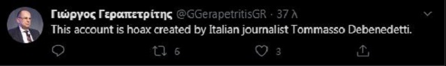 Ο λογαριασμός όμως ήταν εμφανώς ψευδώς, κάτι που έσπευσε να διευκρινίσει και ο ίδιος λίγα λεπτά μετά την “είδηση”.