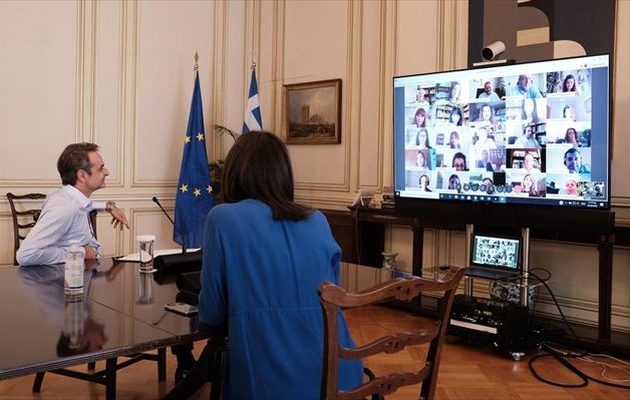 Ο κ. Μητσοτάκης συνομίλησε με εκπαιδευτικούς που συμμετείχαν εθελοντικά στις παραγωγές των μαθημάτων ευχαριστώντας για τη μεγάλη συνεισφορά τους με την προσφορά καλών υπηρεσιών και γνώσεων για τα παιδιά που έμειναν σπίτι.