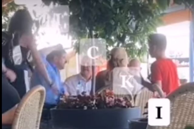 Του ζητά να βγάλουν μια φωτογραφία, ο Νίκος Χαρδαλιάς δείχνει γοητευμένος και χαμογελά ενώ το κινητό, για να τραβήξει τη φωτογραφία, κρατά ένα ανήλικο παιδί, μάλλον ο γιος της Κουσκούση.