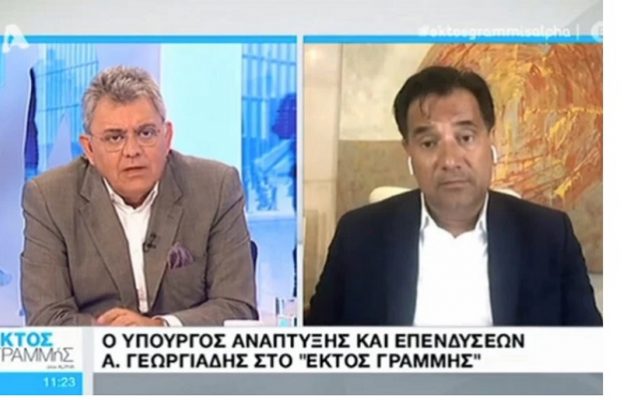 Μαυρισμένος εμφανίστηκε ο Άδωνις Γεωργιάδης στην εκπομπή «Εκτός Γραμμής» στον Alpha, αν και φέτος το καλοκαίρι βλέπει τη θάλασσα με το… κυάλι!