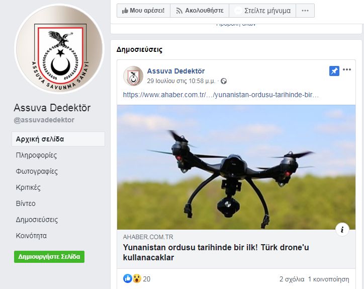 Η τουρκική εταιρεία έχει «καρφιτσωμένη» ανάρτηση στη σελίδα της στο Facebook -από τουρκική ειδησεογραφική ιστοσελίδα- που αναφέρεται στο «κλείσιμο» της δουλειάς με τον ελληνικό στρατό:
