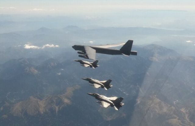 Τέσσερα ελληνικά αεροσκάφη F-16 BLK 52+ συνόδευσαν ένα αμερικανικό στρατηγικό βομβαρδιστικό τύπου Β-52 την Παρασκευή, στο πλαίσιο της δραστηριότητας ALLIED SKY, «επιδεικνύοντας τους ισχυρούς συμμαχικούς δεσμούς των κρατών μελών του ΝΑΤΟ», όπως ανακοινώθηκε από το ΓΕΕΘΑ.