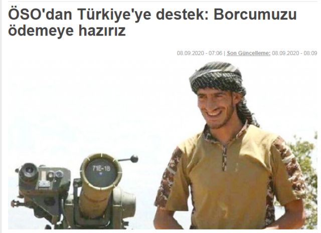 Η τουρκική εφημερίδα αναφέρει ότι οι «εκπαιδευμένοι στρατιώτες του FSA», δηλαδή του φιλότουρκου Ελεύθερου Συριακού Στρατού (FSA), όπως ο Σουχεΐλ Χαμούντ (Suheil Hammoud), ο «εφιάλτης του καθεστώτος Σαράτζ», έστειλε μήνυμα «και εκ μέρους των φίλων του» (σ.σ. εννοεί των συν-τζιχαντιστών του), ότι είναι πρόθυμος/οι να πολεμήσουν στα ελληνικά σύνορα (σ.σ. κατά της Ελλάδας) για να ξεπληρώσουν τα χρέη τους «στους Τούρκους αδερφούς τους» που μαρτύρησαν στη συριακή γη.