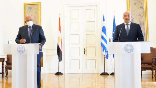 Υπόδειγμα εφαρμογής του διεθνούς δικαίου, του δικαίου της θάλασσας και της αρχής σεβασμού της καλής γειτονίας μεταξύ των κρατών, χαρακτήρισε ο υπουργός Εξωτερικών Νίκος Δένδιας τη συμφωνία Ελλάδος- Αιγύπτου, για την πριν από περίπου ένα μήνα μερική οριοθέτηση των θαλασσίων ζωνών, μετά τη συνάντησή του με τον Αιγύπτιο ομόλογό του Σάμεχ Σούκρι, ο οποίος βρίσκεται στην Αθήνα.