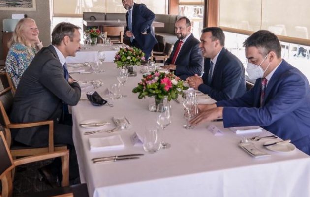 Ο Πρωθυπουργός Κυριάκος Μητσοτάκης παρέθεσε την Τετάρτη γεύμα προς τιμήν του Πρωθυπουργού της Βόρειας Μακεδονίας, Ζόραν Ζάεφ, επ’ ευκαιρία της έλευσής του στην Αθήνα προκειμένου να συμμετάσχει στο συνέδριο του Economist.