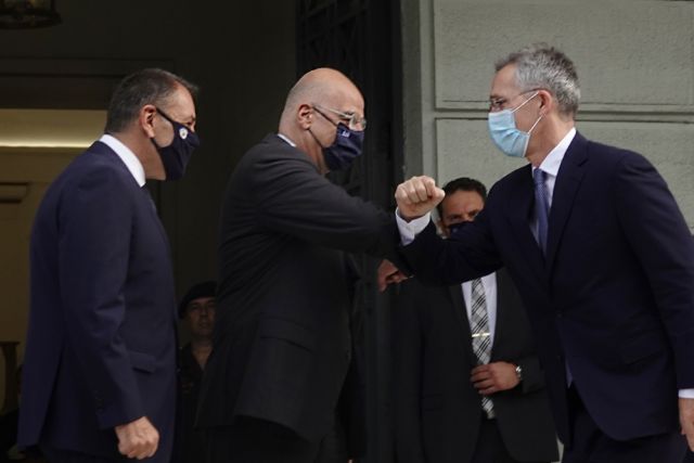 Νωρίτερα, τον γενικό γραμματέα του ΝΑΤΟ είχαν υποδεχθεί στο υπουργείο Εξωτερικών ο υπουργός Εξωτερικών Νίκος Δένδιας και ο υπουργός Εθνικής Άμυνας Νίκος Παναγιωτόπουλος.