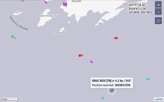 Παράλληλα, η ιστοσελίδα pressing.gr γράφει ότι, εντός της ζώνης των 12 ν.μ. στην διακεκαυμένη περιοχή του συμπλέγματος της Μεγίστης κινείται το τουρκικό ερευνητικό σκάφος «Oruc Reis», συνοδευμένο από τουλάχιστον 6 τουρκικά πολεμική σκάφη.