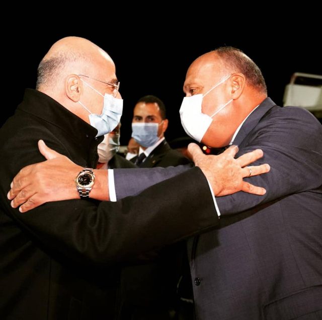 Θερμός ήταν ο εναγκαλισμός του Νίκου Δένδια με τον Αιγύπτιο ομόλογό του Σάμεχ Σούκρι.
