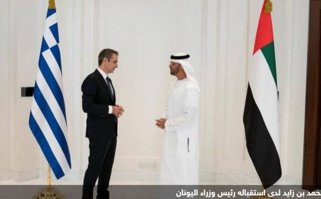 Την Τετάρτη, ο σεΐχης Μοχάμεντ μπιν Ζαγέντ, ηγέτης των Ηνωμένων Αραβικών Εμιράτων, και ο Πρωθυπουργός της Ελλάδας, Κυριάκος Μητσοτάκης, παρακολούθησαν την ανταλλαγή συμφωνίας κοινής δήλωσης για τη σύναψη της στρατηγικής εταιρικής σχέσης μεταξύ των ΗΑΕ και της Ελλάδας, εκτός από την ανταλλαγή μνημονίου συνεργασίας στον τομέα των εξωτερικών και αμυντικών πολιτικών, όπως σημειώνει το «Sky News Arabia» και αναμεταδίδει το Βαλκανικό Περισκόπιο.
