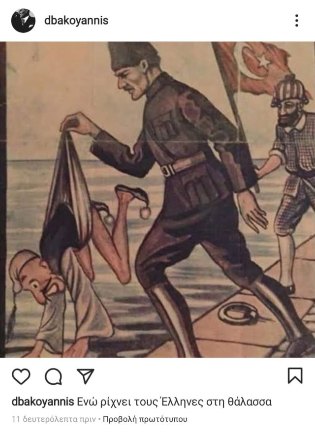 Με την επέτειο των Ιμίων να πλησιάζει, οι χάκερ άλλαξαν το προφίλ της πολιτικού κι έβαλαν παντού φωτογραφίες του Κεμάλ και εικόνες που προωθούν τη διχόνοια, όπως το σκίτσο με τη λεζάντα «πετώντας τους Έλληνες στη θάλασσα». Δημιούργησαν ακόμη και σχετικό «story».
