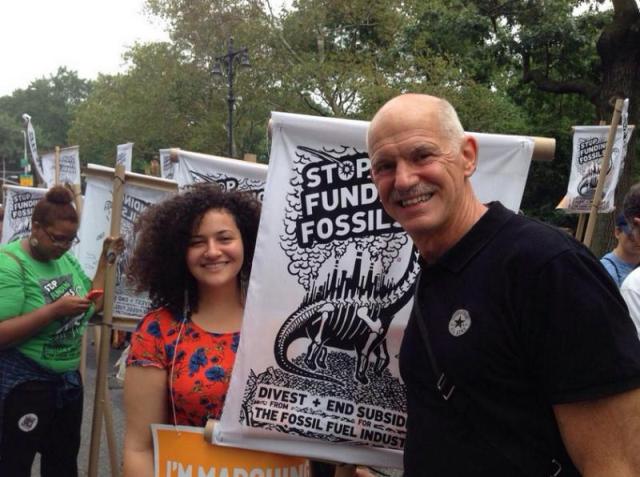 Στη Νέα Υόρκη βρέθηκε ο πρώην πρωθυπουργός Γιώργος Παπανδρέου κι έλαβε μέρος σε διαδήλωση για την κλιματική αλλαγή σε κεντρικό δρόμο της πόλης.
