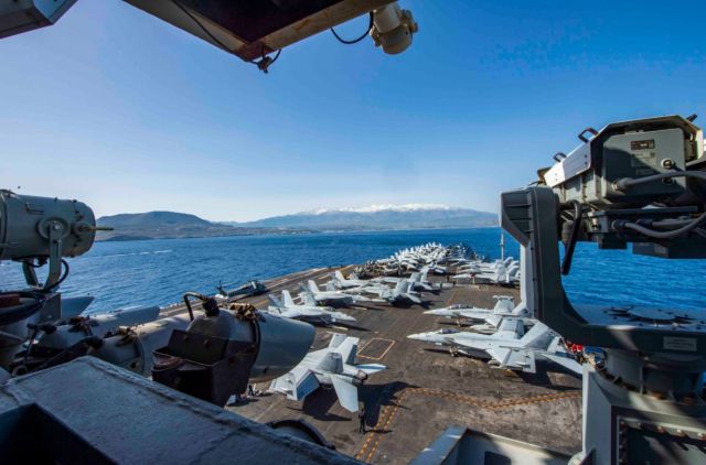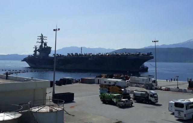 Το «Αϊζενχάουερ» κατέπλευσε στη ναυτική βάση του Μαραθίου λίγο πριν τις 11 το πρωί του Σαββάτου.