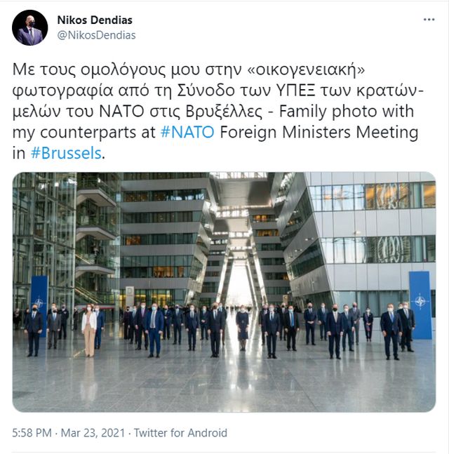«Κατ’ αρχήν, είχα τη χαρά σήμερα να συμμετάσχω στο Υπουργικό Συμβούλιο του ΝΑΤΟ, όπου υποδεχθήκαμε την πρώτη παρουσία του νέου Αμερικανού Υπουργού Εξωτερικών, του κ. Άντονι Μπλίνκεν.
