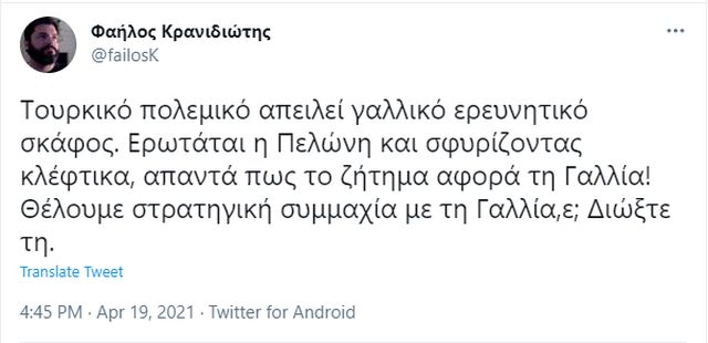 »Θέλουμε στρατηγική συμμαχία με τη Γαλλία, ε; Διώξτε τη».