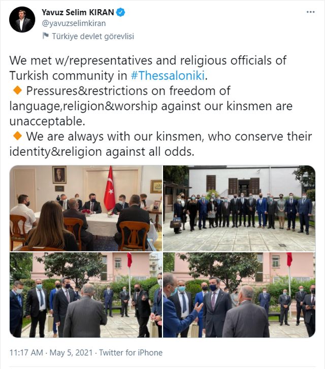 Σε ανάρτησή του στο twitter, από τη Θεσσαλονίκη, με αφορμή την επίσκεψη, ο Γιαβούζ Σελίμ Κιράν ανέφερε: