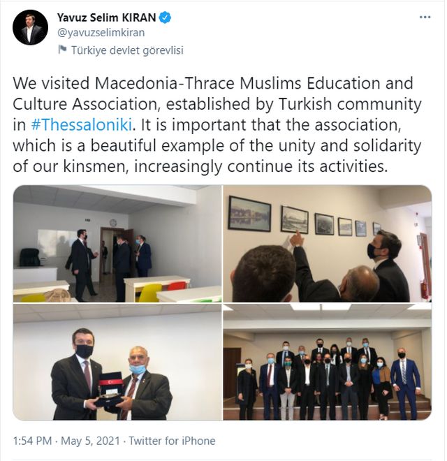 «Επισκεφτήκαμε την Ένωση Εκπαίδευσης και Πολιτισμού Μουσουλμάνων της Μακεδονίας-Θράκης, που ιδρύθηκε από την τουρκική κοινότητα στη Θεσσαλονίκη.