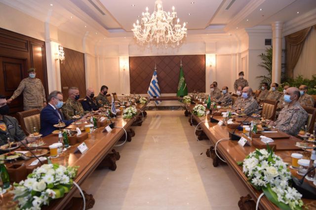 Ο Αρχηγός ΓΕΕΘΑ στρατηγός Κωνσταντίνος Φλώρος στο πλαίσιο επίσημης επίσκεψης που πραγματοποιεί στο Βασίλειο της Σαουδικής Αραβίας, συναντήθηκε με τον ομόλογο του Αρχηγό του Γενικού Επιτελείου των Ενόπλων Δυνάμεων (Α/ΓΕΕΔ) της εν λόγω χώρας, στρατηγό Φαγιάντ μπιν Χαμέντ αλ Ρουαίλι, συνοδευόμενος από τον Πρέσβη της Ελλάδας στο Ριάντ κ. Αλέξη Κωνσταντόπουλο.