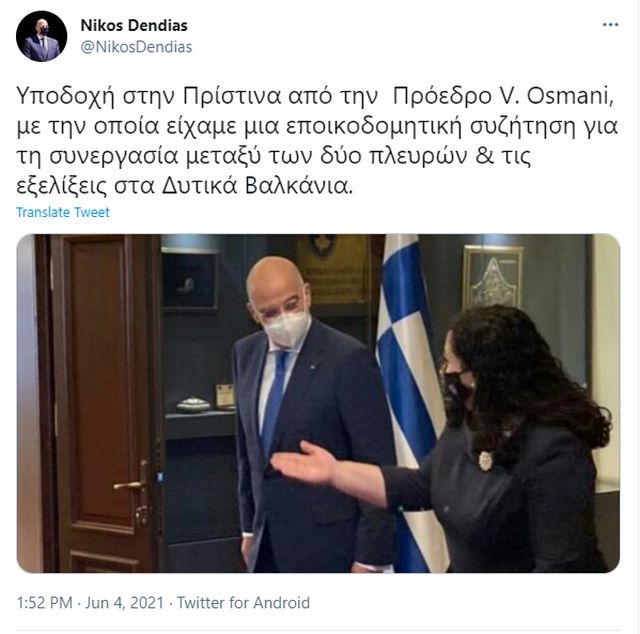 »Έτσι, αναβαθμίστηκε σε “Γραφείο Συμφερόντων του Κοσσυφοπεδίου στην Αθήνα”, κάτι που ελπίζουμε ότι θα διευρύνει τις σχέσεις με την Ελλάδα».