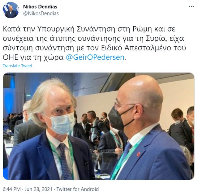 Στο πλαίσιο αυτό υπενθυμίζεται ότι ο υπουργός Εξωτερικών Νίκος Δένδιας έχει συχνές επαφές με τον κ. Πέντερσεν, τον οποίο συνάντησε τον περασμένο Απρίλιο στην Γενεύη.