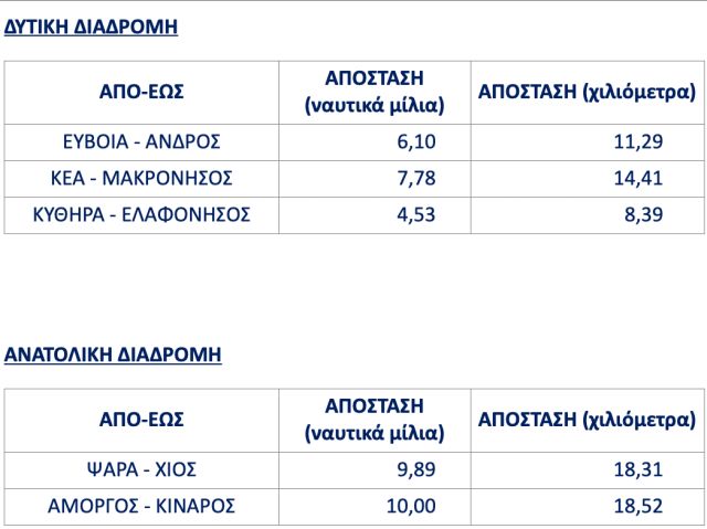 Οι αποστάσεις εμφαίνονται στον συνημμένο πίνακα (συν.2).