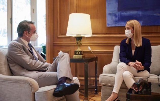 Την ανάγκη προστασίας των συνόρων της Ελλάδος και της Ευρωπαϊκής Ένωσης με παράλληλο σεβασμό στα Ανθρώπινα Δικαιώματα και την ταυτόχρονη στήριξη από την ΕΕ των χωρών που βρίσκονται κοντά στο Αφγανιστάν, ώστε να εμποδιστούν οι ροές προσφύγων στην Ευρώπη, υπογράμμισε ο πρωθυπουργός Κυριάκος Μητσοτάκης, τη Δευτέρα κατά τη συνάντησή του με την Α΄ αντιπρόεδρο του Ευρωπαϊκού Κοινοβουλίου Ρομπέρτα Μετσόλα στο Μέγαρο Μαξίμου.