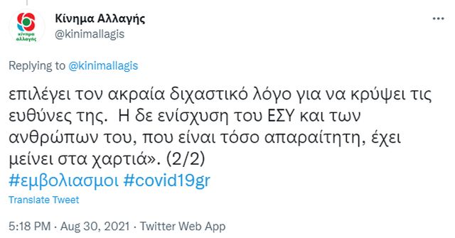 »Σήμερα, αντί να σχεδιάζει πως θα αποφύγουμε την διασπορά του κορωνοϊού, επιλέγει τον ακραία διχαστικό λόγο για να κρύψει τις ευθύνες της.