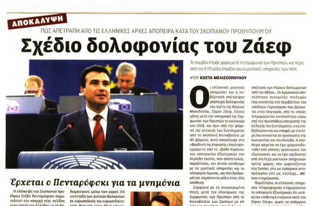 Οι ελληνικές μυστικές υπηρεσίες και η κυβέρνηση απέτρεψαν απόπειρα δολοφονίας του ηγέτη της Βόρειας Μακεδονίας Ζόραν Ζάεφ, λίγους μήνες μετά την υπογραφή της Συμφωνίας των Πρεσπών το καλοκαίρι του 2018, και πριν από την ψήφιση της αλλαγής του Συντάγματος από το σκοπιανό κοινοβούλιο με 80 ψήφους, αποκαλύπτει ο δημοσιογράφος Κώστας Μελισσόπουλος στην εφημερίδα «Βραδυνή».