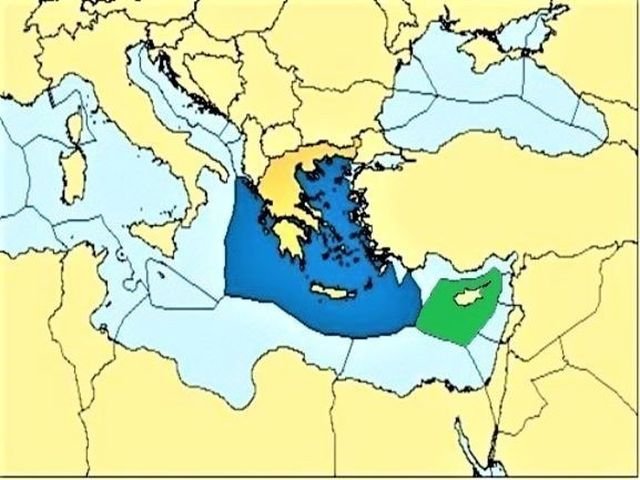 Θα ήταν πολύ χρήσιμο να αντιπαραθέσουμε τον χάρτη που δείχνει ότι η Κύπρος έχει θαλάσσια σύνορα με την Ελλάδα που τα δυο κράτη αρνούνται να οριοθετήσουν.