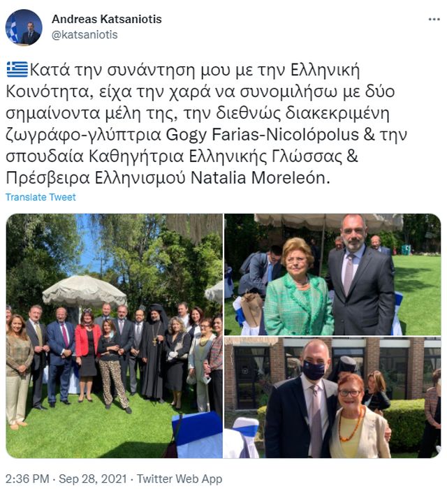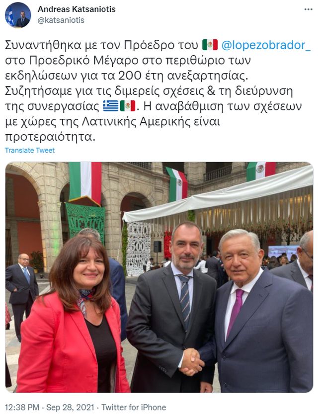 Ο υφυπουργός Εξωτερικών, Ανδρέας Κατσανιώτης, πραγματοποίησε επίσκεψη στην Πόλη του Μεξικού στις 26-28 Σεπτεμβρίου 2021.