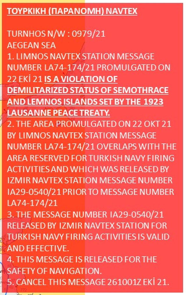 Η Τουρκία εκδίδει «απαγορευτικές» αντί-navtex για ασκήσεις των ελληνικών ΕΔ στο Αιγαίο, σε κάθε ευκαιρία, μεταδίδει το Militaire.