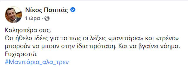 Μάλιστα ο Νίκος Παππάς, με δύο αναρτήσεις του στο Facebook «έβγαλε» το θέμα.